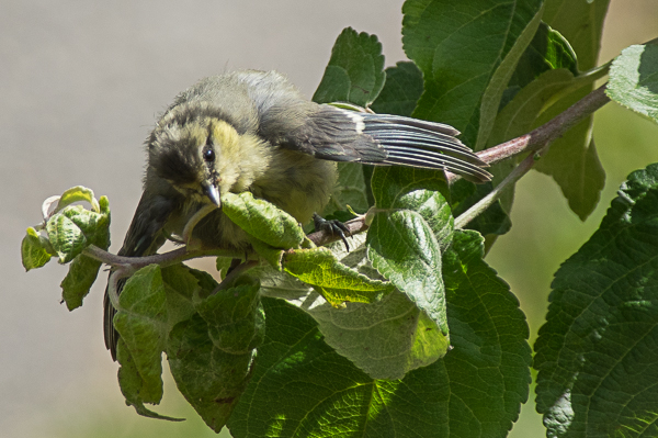Här är en av dom första bilderna med Pentax-DA 1.4x AW monterad mellan teleobjektivet och kamerahuset. Brännvidden blir då 420mm vilket motsvarar 630mm för 35mm film eller fullformat. Jag fotograferade ett gäng glada blåmesungar i äppelträdet utanför vår balkong.